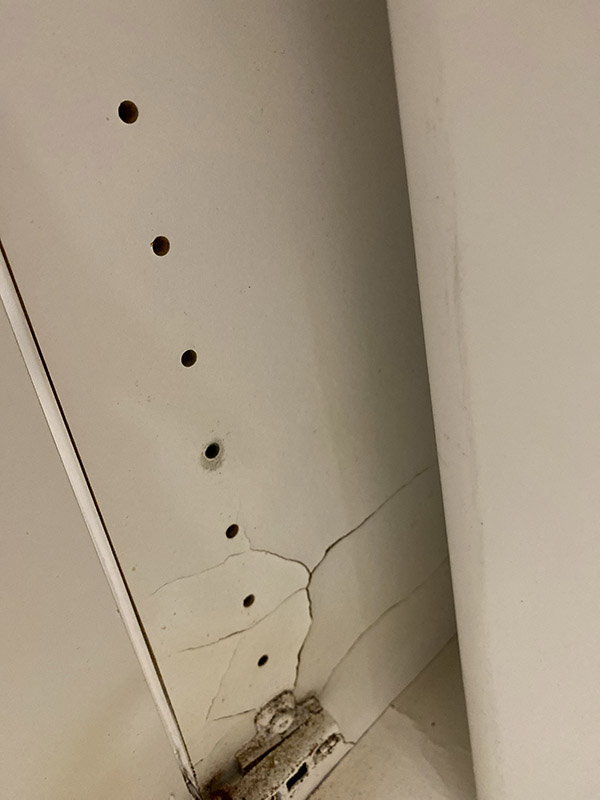 It all started with a leak. At first neither one of the homeowners saw any signs of the slow water leak hidden inside a wall. The leak did not set off any alarms. But eventually there were warning signs. And one day the homeowners noticed stains and odd discolorations in the floor tile. Upon a closer evaluation, they discovered the sheetrock and a base cabinet had slowly become damaged, too. Ugh! What a hot mess!