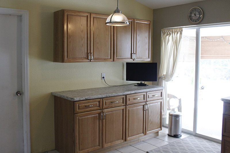 Our customer, Maria, was so much fun to work with. She had been planning her new kitchen with a limited budget in mind. Since she understood the huge gulf between budget and expectation, she was willing to focus on small improvements rather than major renovations. Maria knew costs for cabinets, appliances, countertops, and tile back splashes could escalate very quickly. So, she decided to do as much of the remodel work around her kitchen to stretch her budget. She wasn’t afraid of DIY projects. The pint-size, semi-retired homeowner set to work.