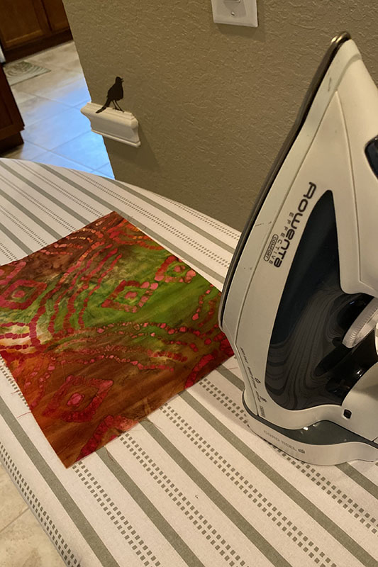 1. Iron. By ironing, you’ll be fusing the fabric and wire together. (Every brand of backing is a little bit different. Make sure you follow the directions that are specific to your particular brand of backing.)