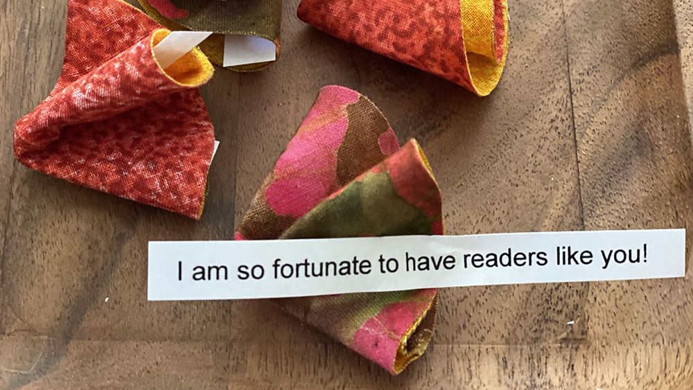 Nothing says good fortune like a tasty fortune cookie.  But these fortune cookies are low calorie.  In fact, they are zero calories, because they are made of fabric. Best of all, these no sew fortune cookies can be used again and again to bring smiles.