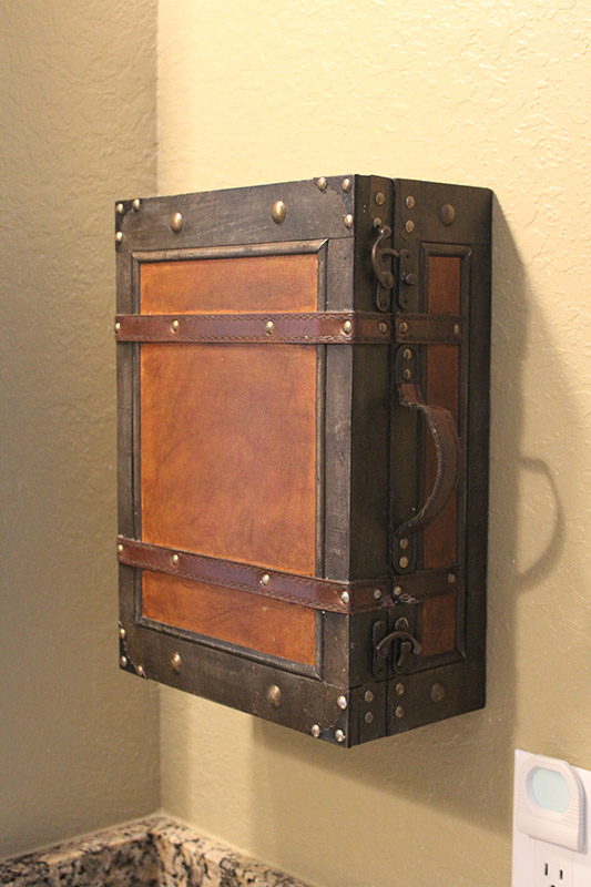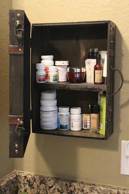 Let’s take a look at how I whipped something up to organize our small bathroom items. The idea came to me because my husband and I have had year-round guests. I’ve often helped them carry various luggage pieces into our home. As you know, suitcases come in all shapes and sizes. This inspired me! It occurred to me how a well-traveled flair from vintage suitcases might make for medicine cabinets. After all, we all know most traditional medicine cabinets are absolutely boring. Am I right?