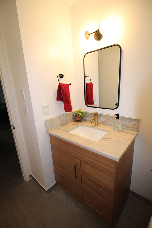 Before the kitchen was completed, Cristina asked me to measure their guest bathroom. She wanted the same materials in the guest bath as their new kitchen.