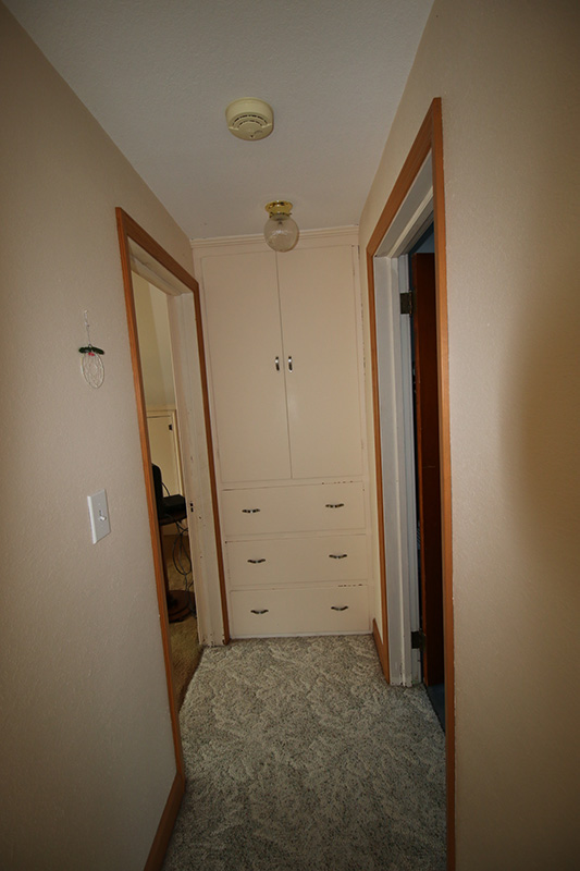 Then, we entered the kitchen. Holy cow! Sure enough there WAS a doorway that led to the hallway. I could hardly believe my eyes. Nancy and Erwin allowed me to take a few more photos. Then we headed up the stairs—another jolt to my subconscious—more powerful this time. At the top of the stairs was a built-in closet with drawers. This was the place I stored my clothes as a teenager. My bedroom used to be to the left of the hallway, and my siblings on the right. Nancy told me she raised two boys in this home. Nancy and Erwin are now empty-nesters. I glanced out the window and noticed the TV antenna tower was no longer there. That’s when the homeowners and I recalled our stories of unnamed climbers who had painstakingly ascended and descended the two-story tower to sneak through the second story bedroom window at night. Apparently someone got caught. So, that’s when Erwin permanently removed the antenna. With that news, we all had a hearty laugh.