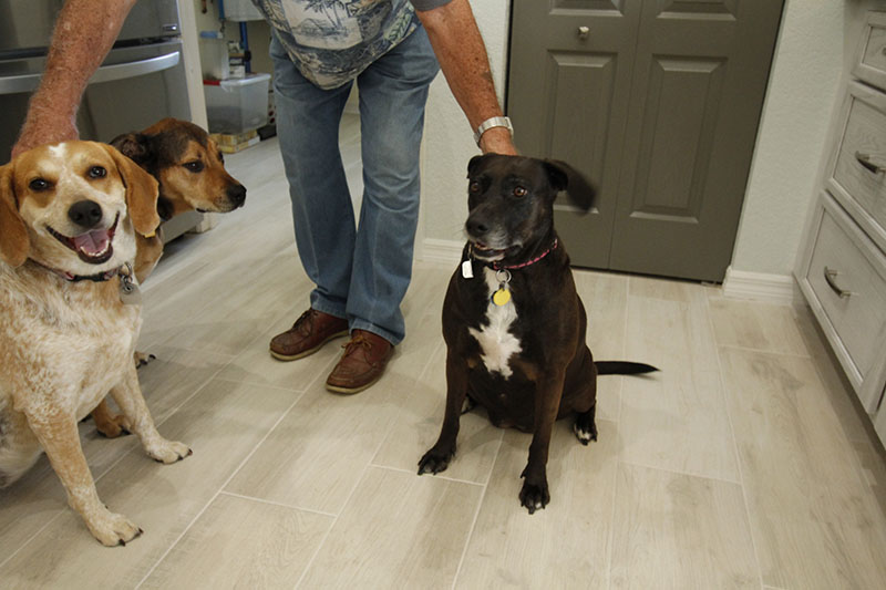 Flash forward to when I first entered Richard’s lovely home. A rescue dog, a medium-sized short-haired dog, with his upturned tail always seemed to want to be right next to Richard’s side. As we started to discuss the water damage, another dog appeared. This one was the one his granddaughter found wandering on a heavily congested road while she was out walking her own dog. She tied her dog’s leash to a post to save the other dog from being hit by the speeding cars. When they couldn’t locate the owners, Richard took the second dog in. Then before I knew it, another dog appeared. This third one I learned was from a no-kill shelter. Having lost his wife five years ago, these three rescue dogs were the most comforting beings for Richard to have around.