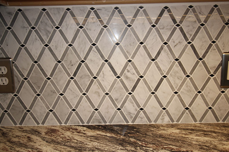 The easiest way to add drama and intrigue to your kitchen backsplash is to play around with different geometrically shaped and patterned tiles. Is there anything a marble backsplash can’t do for a kitchen? Seemingly not, as seen in this breath-taking backsplash design that Richard and his granddaughter selected.  Pucci Tile & Marble installed the stunning tile backsplash.