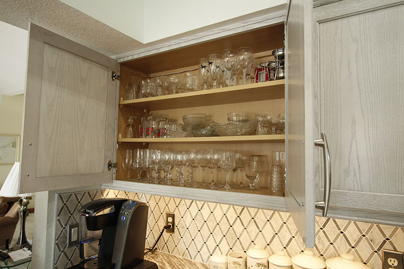 Let’s pause here for a moment. I want to discuss a center stile. What is this? Well, a center stile is a strip of wood that vertically divides a cabinet opening. A center stile is often found in large double doors or wide cabinet spaces. Unlike rails, which are horizontal, a center stile provides vertical support. It is usually placed in the center of the opening to help support the frame’s weight, and stop any possibility of bowing. However, carpenters and cabinet manufacturers now use more durable materials for construction, so center stiles are not always necessary. Since center stiles can interfere with storage, Richard really didn’t want the nuisance of trying to get to something that is behind the stile. When I designed Richard’s kitchen, I made sure each door opens to a separate space with no wood stile blocking the shelf or storage.
