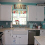 This is where I came into the picture. I knew Cambria has plethora of color and style choices. And so, when I arrived to measure the sink base, I knew instantly the perfect color of countertop for Kelli’s kitchen. Without a shadow of doubt, Cambria’s gorgeous “Montgomery” would be absolutely amazing. You see, Montgomery quartz features soft whites, creams, and hints of pale blue swirled together with veins of seafoam green to create a beautiful, yet subtle countertop. The countertops provide that instant feel of sea, sky, and sand. When Kelli saw a large Montgomery sample, she too, agreed this was exactly the look she wanted. Kelli took matters into her own hands, when she shopped around and found the perfect subway tile backsplash from a big box store.